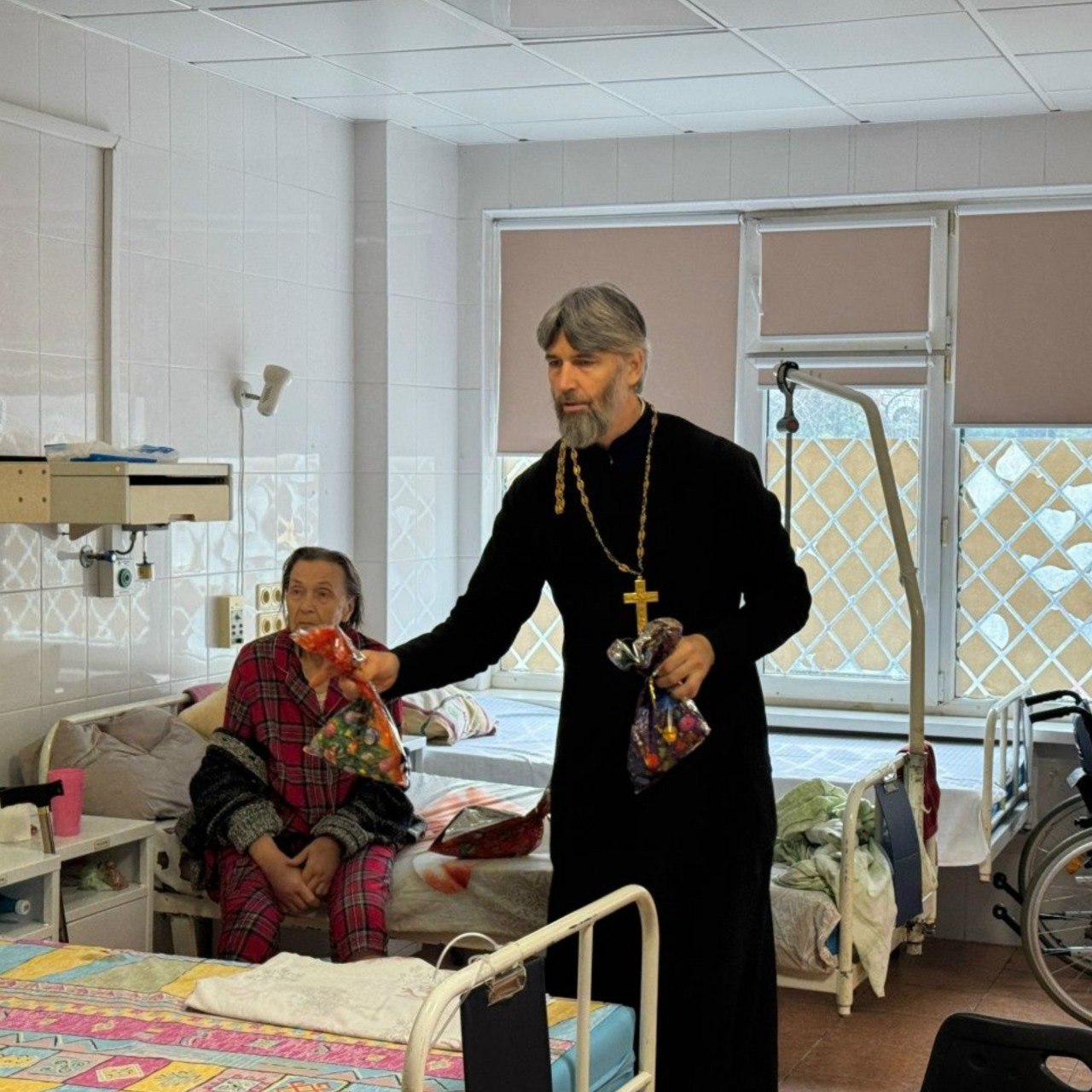 Духовенство, сёстры милосердия и добровольцы с любовью посетили каждого пациента, разделили с ними радость праздника, подарили слова утешения и поддержки. В каждой палате звучали добрые пожелания скорейшего выздоровления